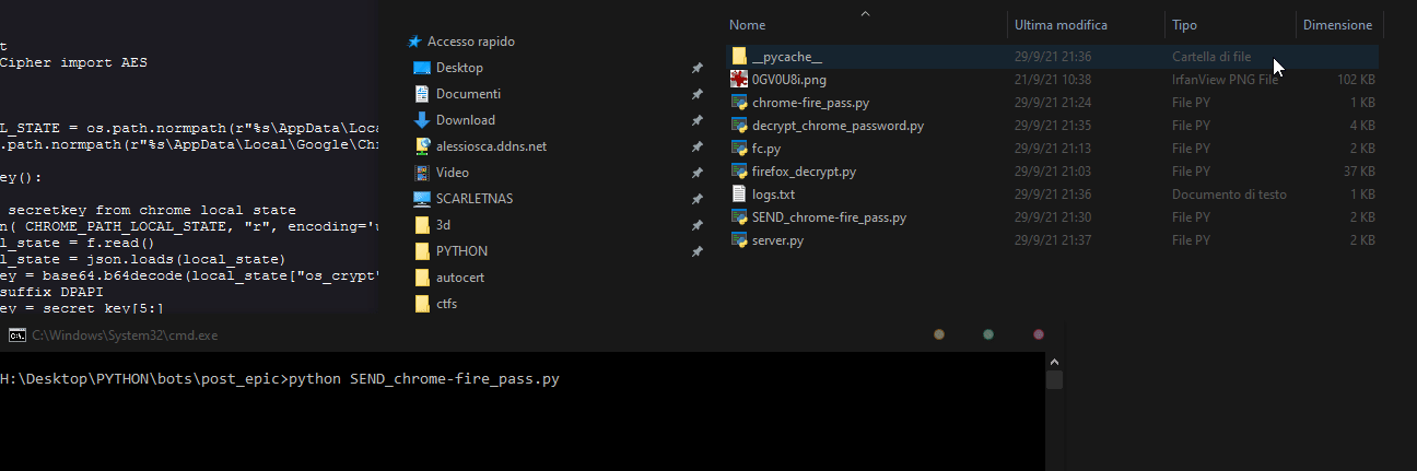 Once line n°24 is edited to your server address, a smart idea would be to compile SEND_chrome-fire_pass.py into an .exe and send it to friends. ( I'M NOT RESPONSIBLE FOR YOUR ACTIONS 😇 )