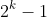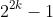 The largest possible number of internal nodes is . It occurs when every other node in each path is a black node. This is produced by a complete binary tree which has alternating levels of black and red nodes. Since the black height is k, the height of the tree is 2k.
