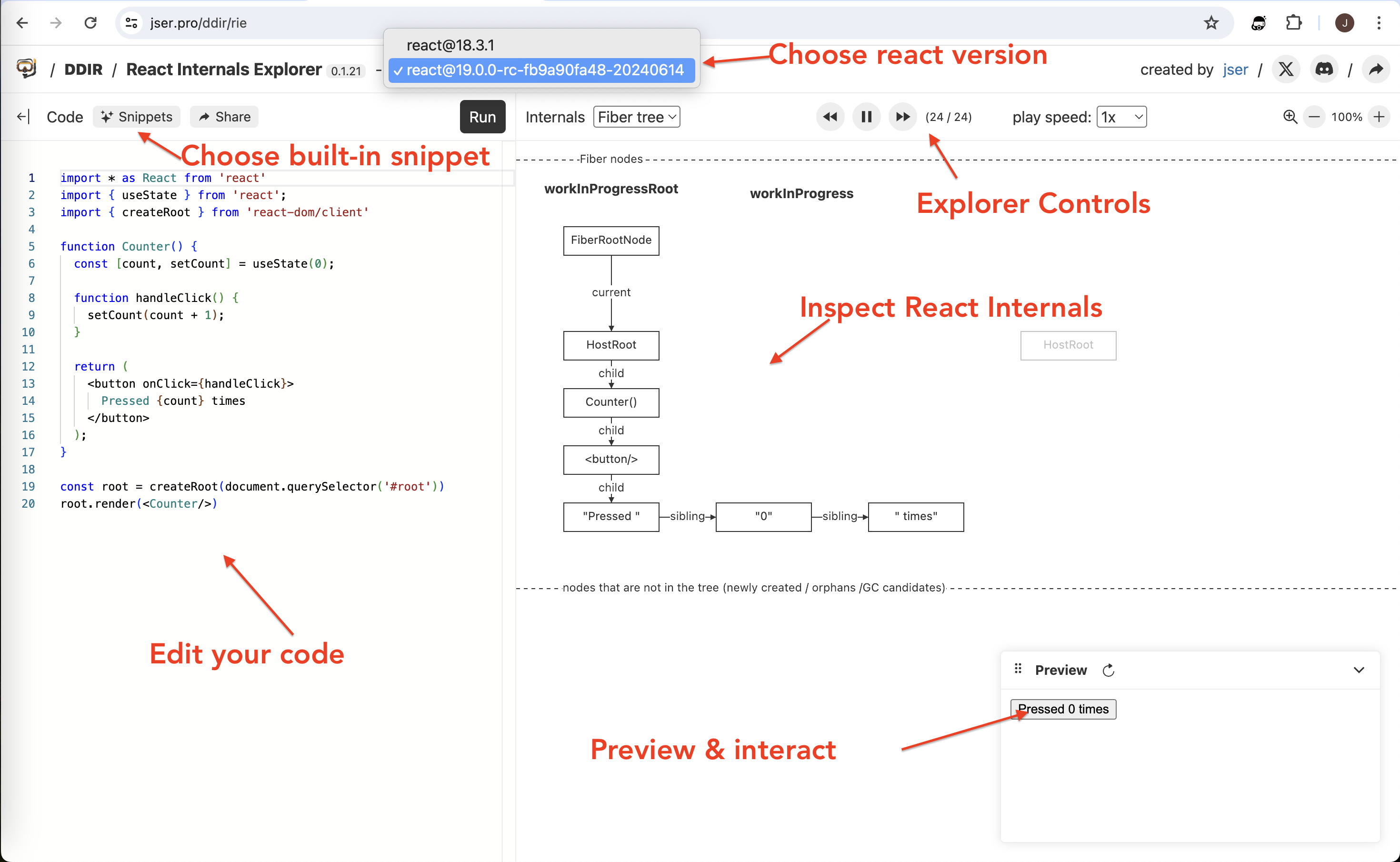 React Internals Explorer 개발자는 2021년 처음 React 영역에 깊게 파고들기 시작했을 때, React 내부를 이해하기 위한 방편으로 직접 다이어그램을 그려나갔다고 한다. 하지만 이는 많은 노력이 수반되고, 정적 이미지 수준에 그쳤기 때문에 자동으로 시각화하는 도구를 만들어 주는 것을 떠올렸다고 한다.