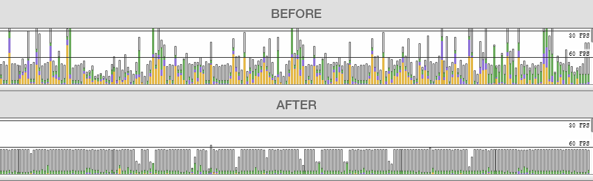 This is the difference in repaint times when Sly is animating an area with 1080p resolution full of images.