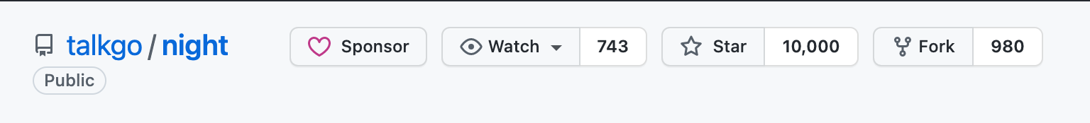 2020-03-26 我们将项目改为 `talkgo/night` 了,相比之前更简单,更好记,也更有意义。