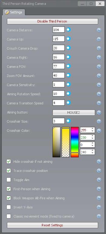 - Classic Movement Mode: Prefer standard Garry's Mod controls? Enable the Classic mode setting to lock your player model to the camera direction while retaining the over-the-shoulder view.